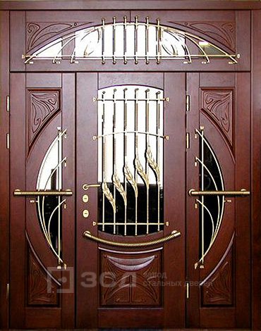Эта модель создана для тех, кто ценит необычные решения и хочет подчеркнуть индивидуальность фасада своего дома. Конструкция из цельногнутой оцинкованной стали с ребрами жесткости и противосъёмными блокираторами обеспечивает максимальную надежность, а утеплитель из плотного пенопласта и тройной магнитный контур уплотнения сохраняют тишину и тепло. Наличие терморазрыва в коробке и полотне исключает промерзание и образование конденсата даже в условиях суровой зимы, делая дверь удобной для эксплуатации в частных домах и коттеджах. Особый акцент заслуживает трёхтворчатая эксклюзивная дверь остеклённая №29, отделанная массивом дерева и дополненная стеклянными вставками с коваными элементами и решеткой. Такое решение придает фасаду выразительность и позволяет наполнить пространство естественным светом, сохраняя при этом высокий уровень безопасности. Дверь комплектуется замками четвертого класса защиты — сувальдным МЕТТЭМ и цилиндровым Cisa, которые можно заменить на более продвинутые или электронные модели. Эта дверь гармонично объединяет эстетику, статусность и надежность, становясь архитектурным акцентом элитного жилья.